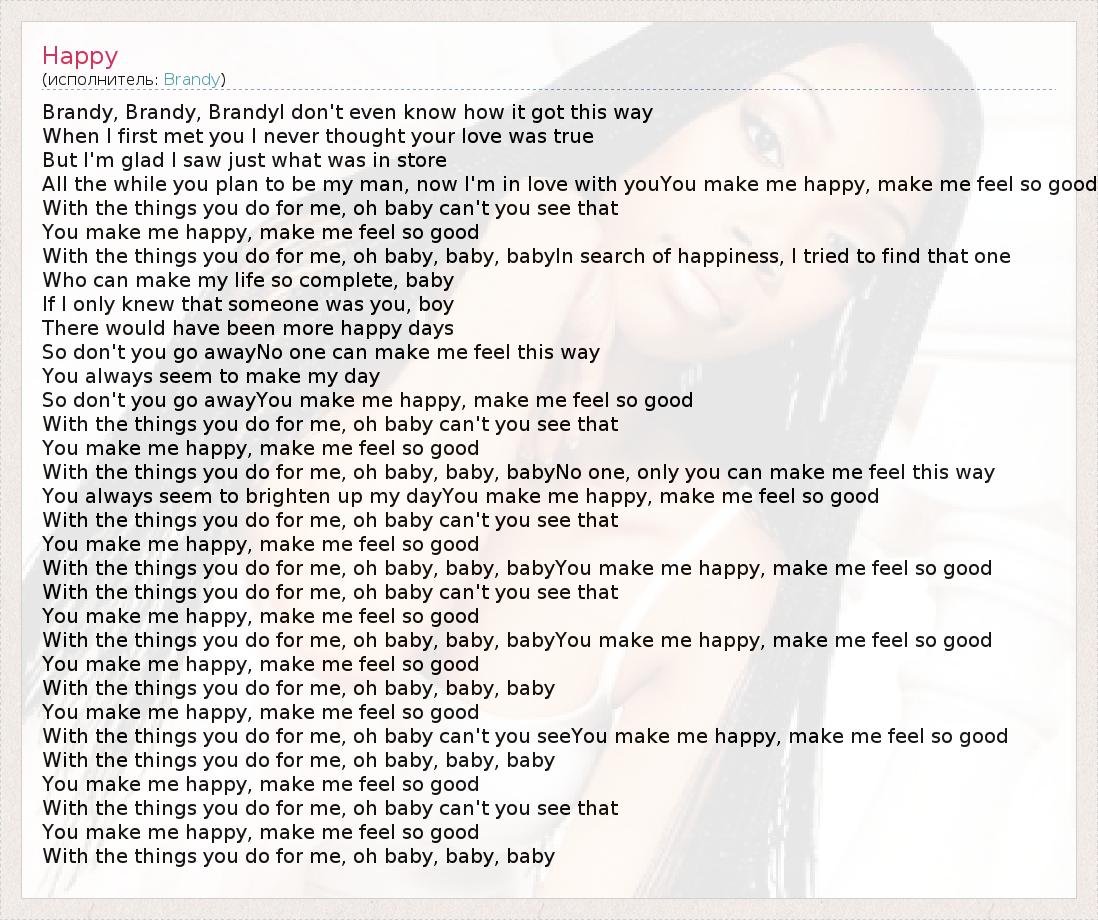 You always seem to brighten up my dayYou make me happy, make me feel so good