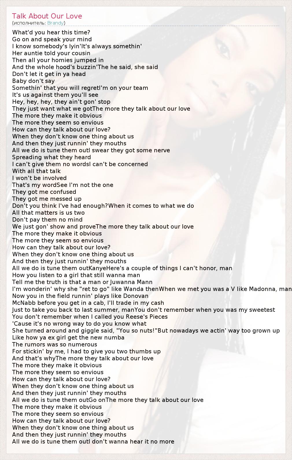 ГлавнаяИсполнителиBrandyTalk About Our Love