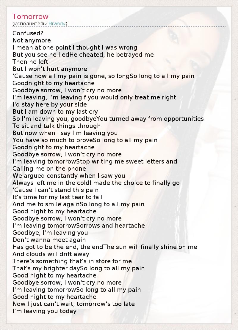 А как ты думаешь, о чем песня "Tomorrow" ?