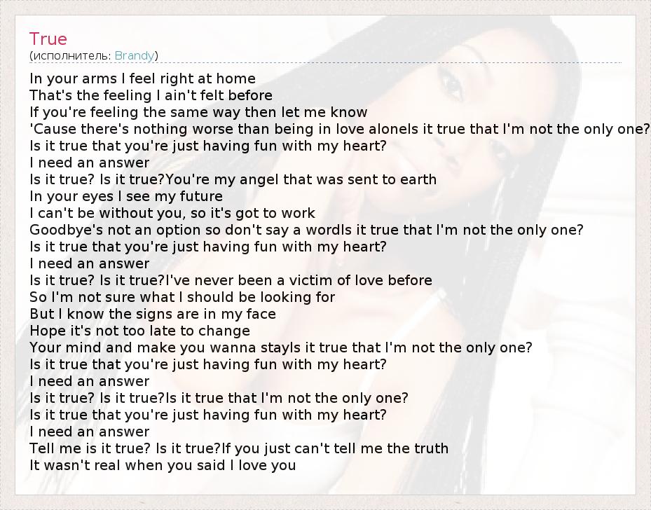 Tell me is it true? Is it true?If you just can't tell me the truth