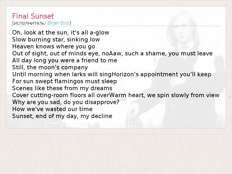 А как ты думаешь, о чем песня "Final Sunset" ?