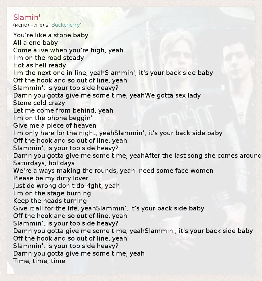 Damn you gotta give me some time, yeahSlammin', it's your back side baby