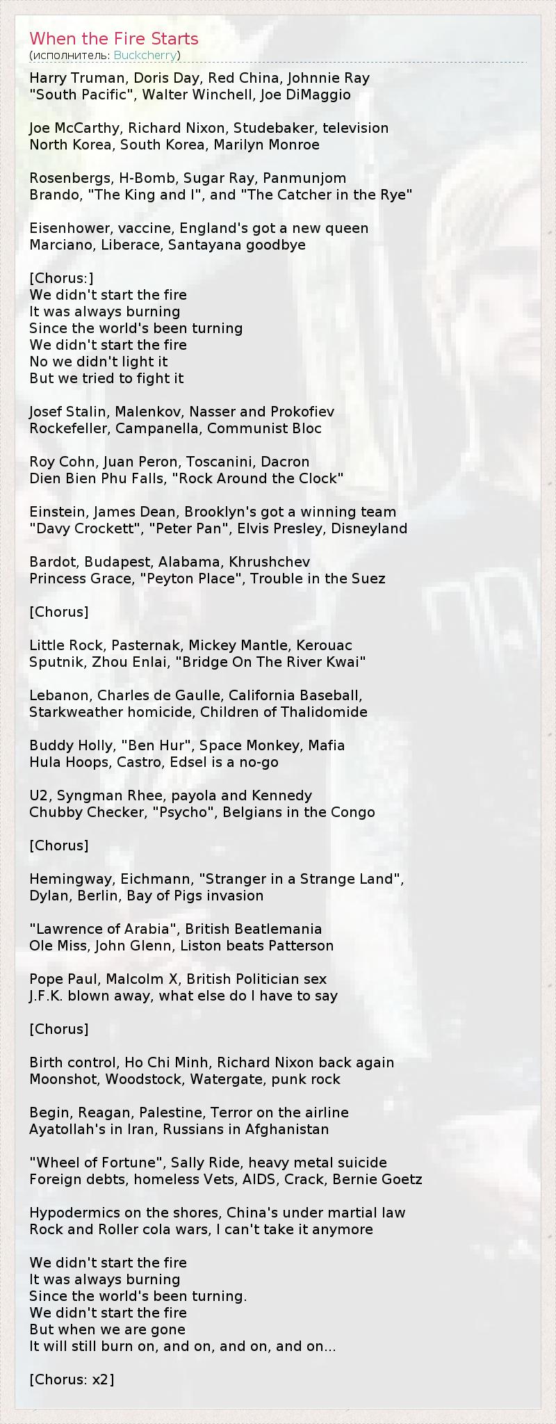 А как ты думаешь, о чем песня "When the Fire Starts" ?