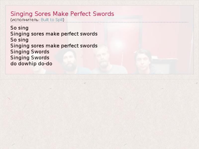 ГлавнаяИсполнителиBuilt to SpillSinging Sores Make Perfect Swords