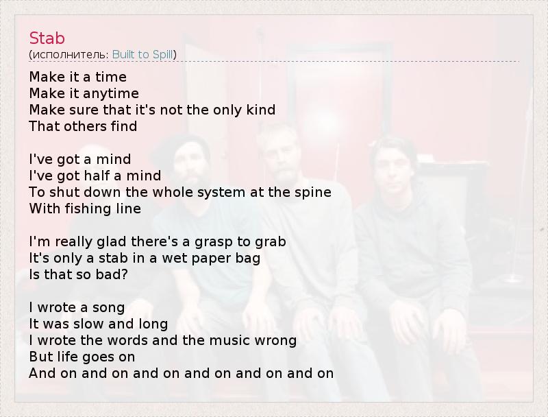 Это интересно:Как должна выглядеть и звучать хрестоматийная группа, проповедующая инди-рок? Именно так, как Built to Spill, являющие собой практически эталонный образец представителя жанра.Взглянем на фотографии участников коллектива на официальном сайте: потертые кроссовки, выцветшие джинсы, внушительные бороды, на лицах одухотворенные выражения. Стопроцентно аутентичные инди-рокеры; запоминаем... продолжение