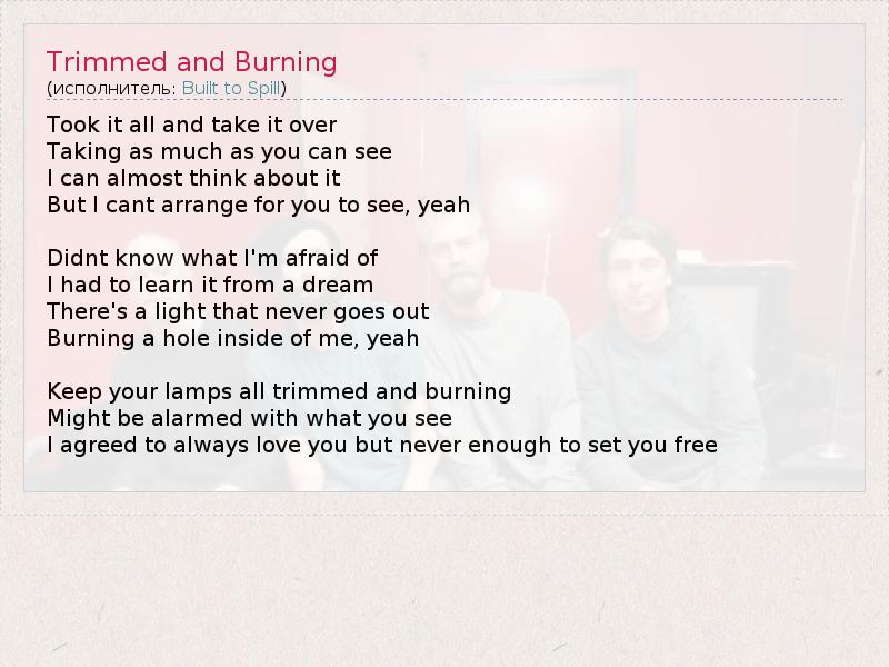 А как ты думаешь, о чем песня "Trimmed and Burning" ?