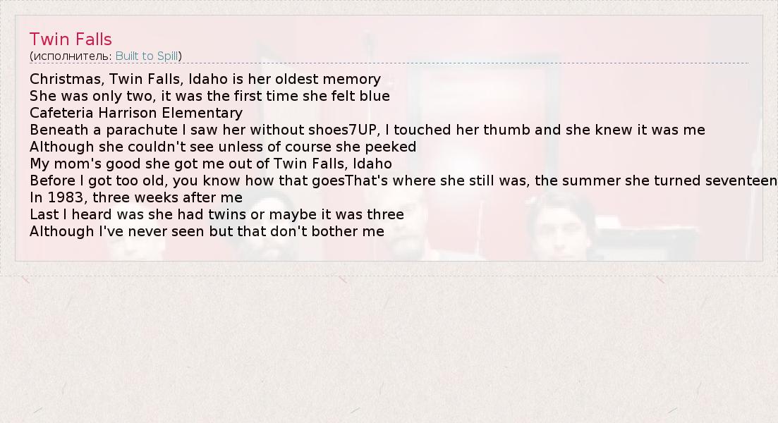 А как ты думаешь, о чем песня "Twin Falls" ?