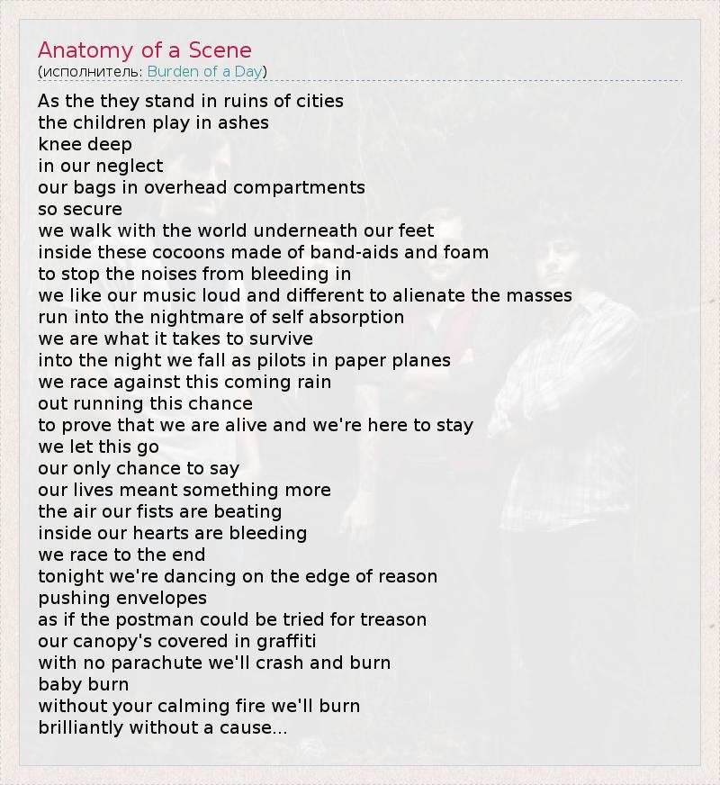 А как ты думаешь, о чем песня "Anatomy of a Scene" ?