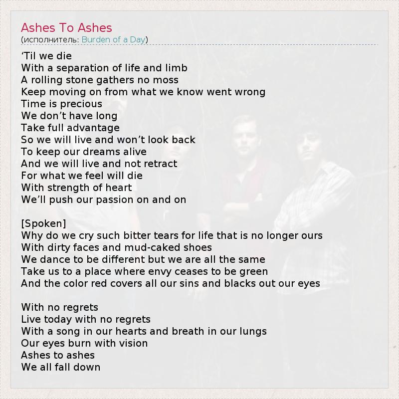 А как ты думаешь, о чем песня "Ashes To Ashes" ?