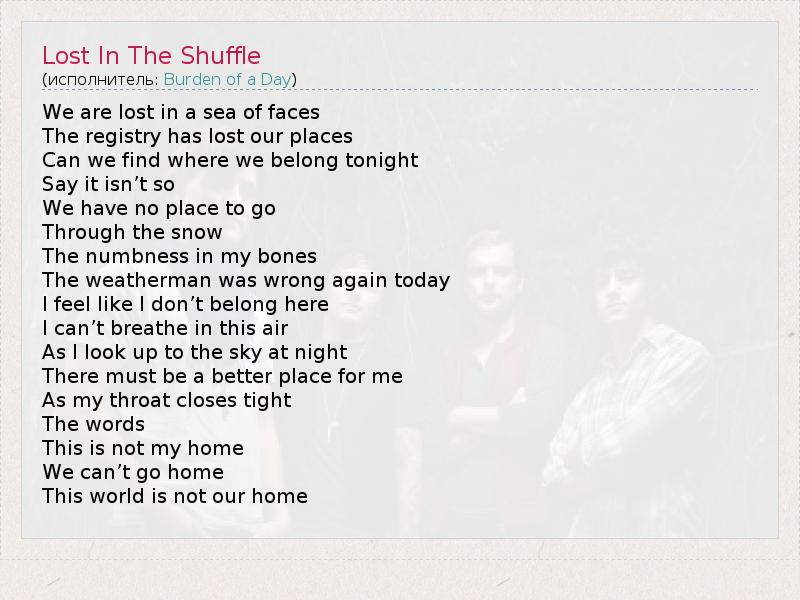 А как ты думаешь, о чем песня "Lost In The Shuffle" ?