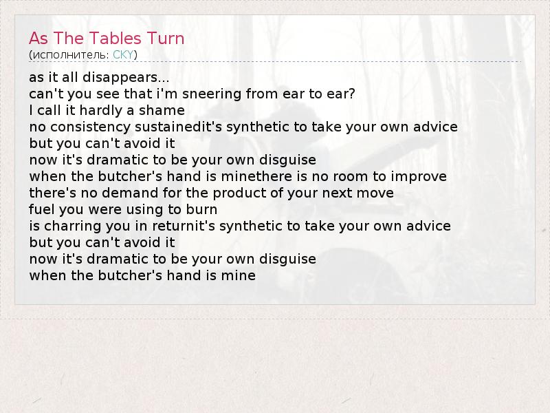А как ты думаешь, о чем песня "As The Tables Turn" ?