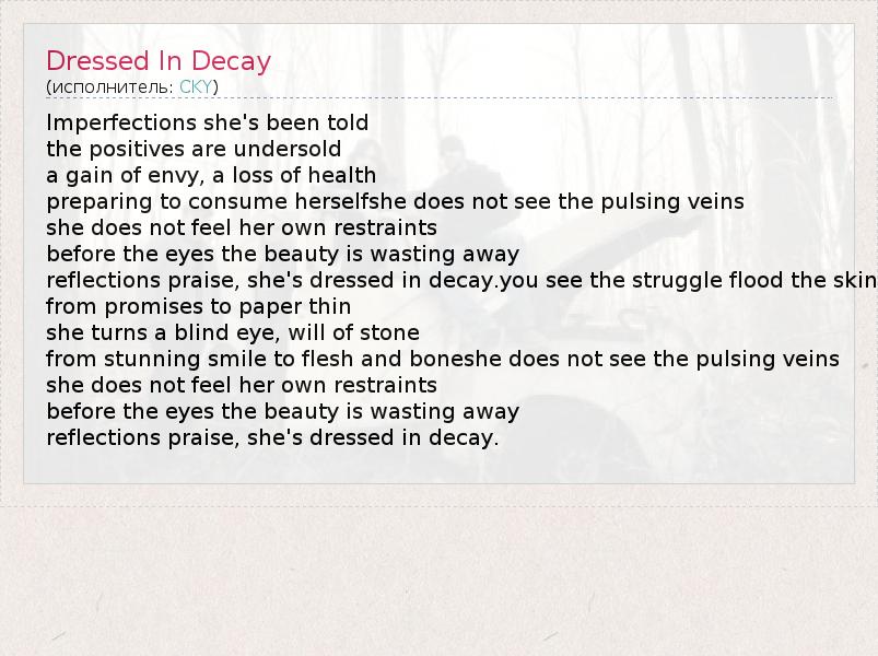 А как ты думаешь, о чем песня "Dressed In Decay" ?