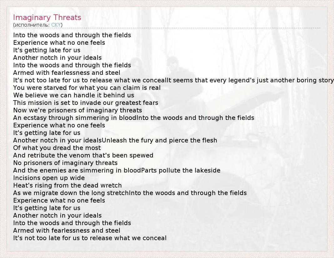 А как ты думаешь, о чем песня "Imaginary Threats" ?