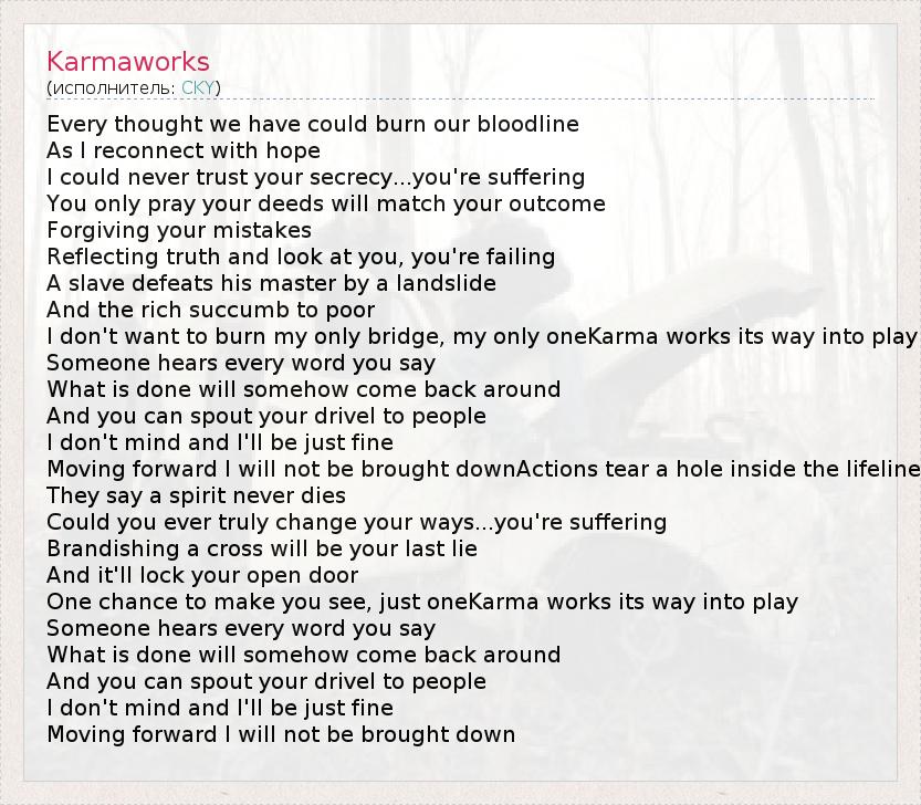А как ты думаешь, о чем песня "Karmaworks" ?