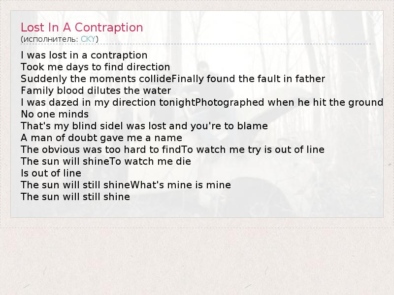 А как ты думаешь, о чем песня "Lost In A Contraption" ?