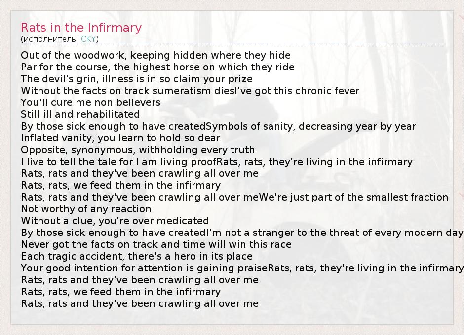 А как ты думаешь, о чем песня "Rats in the Infirmary" ?