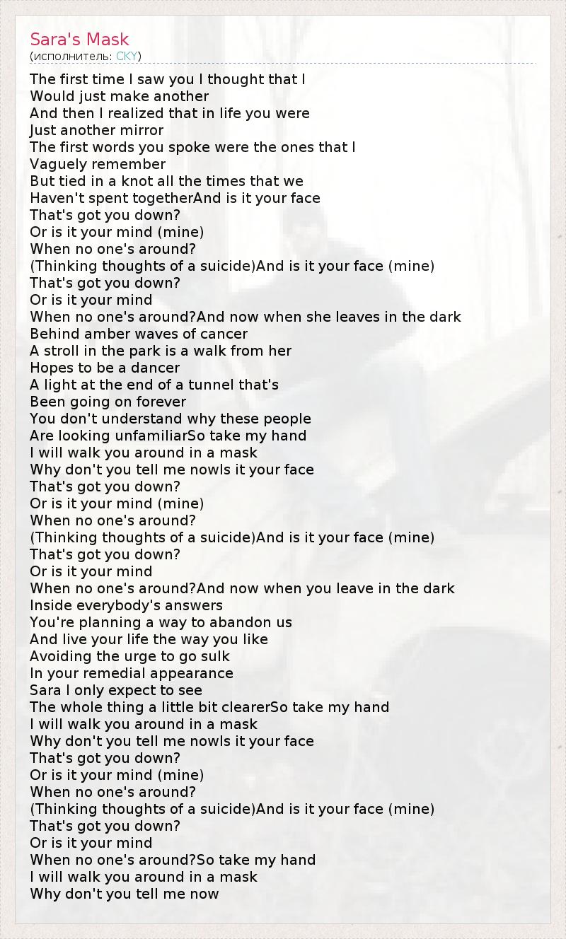 А как ты думаешь, о чем песня "Sara's Mask" ?