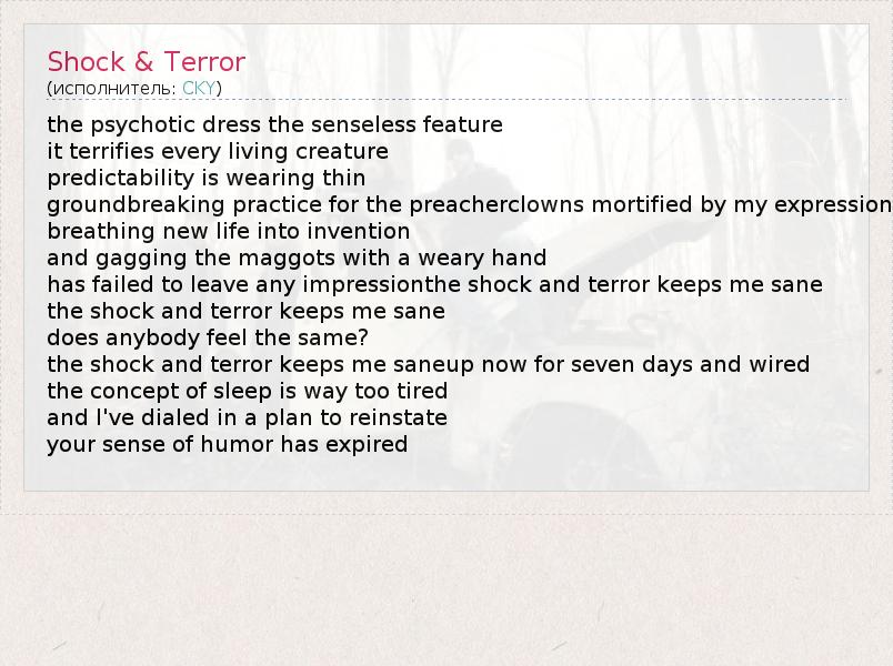 А как ты думаешь, о чем песня "Shock & Terror" ?