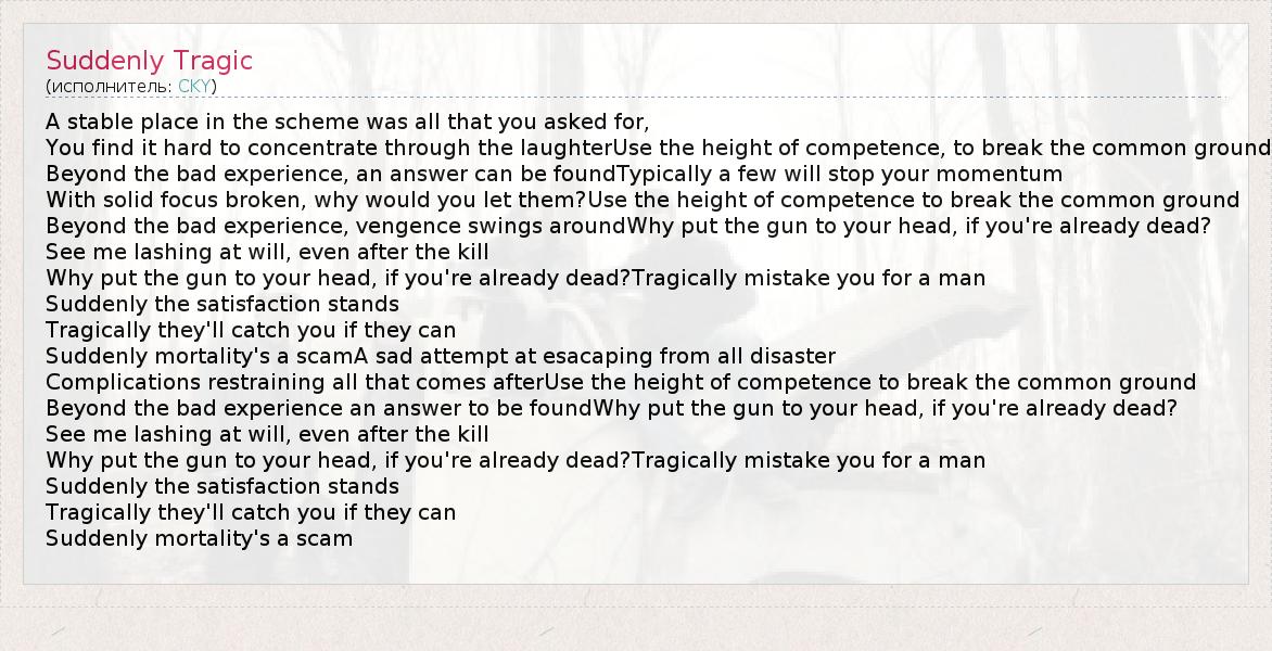 А как ты думаешь, о чем песня "Suddenly Tragic" ?