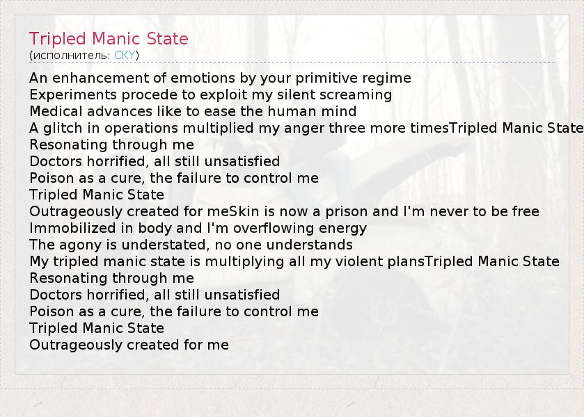 А как ты думаешь, о чем песня "Tripled Manic State" ?