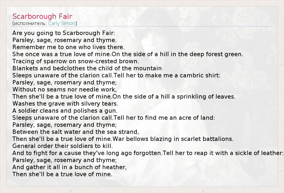 А как ты думаешь, о чем песня "Scarborough Fair" ?