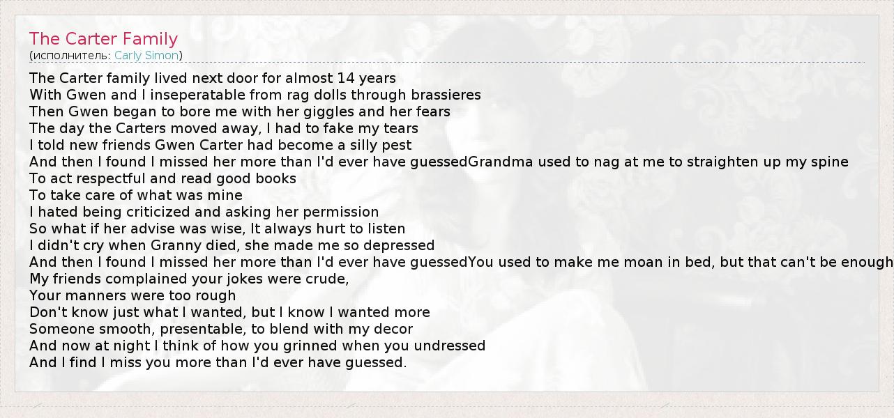 А как ты думаешь, о чем песня "The Carter Family" ?