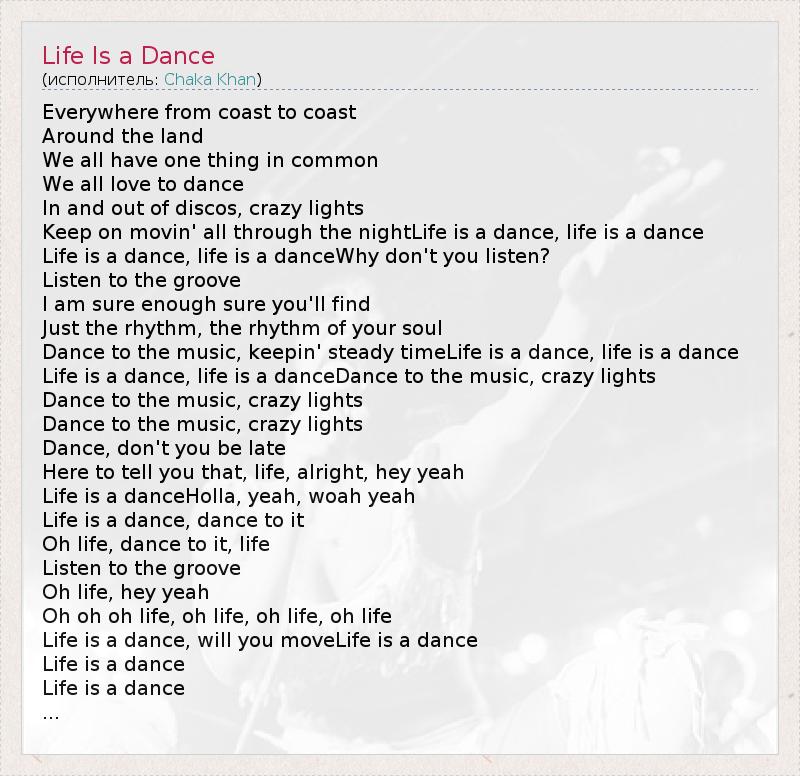 А как ты думаешь, о чем песня "Life Is a Dance" ?