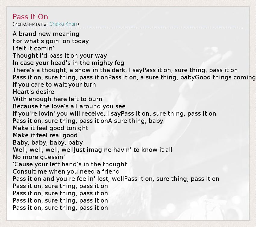 Pass it on, sure thing, pass it onPass it on, a sure thing, babyGood things coming