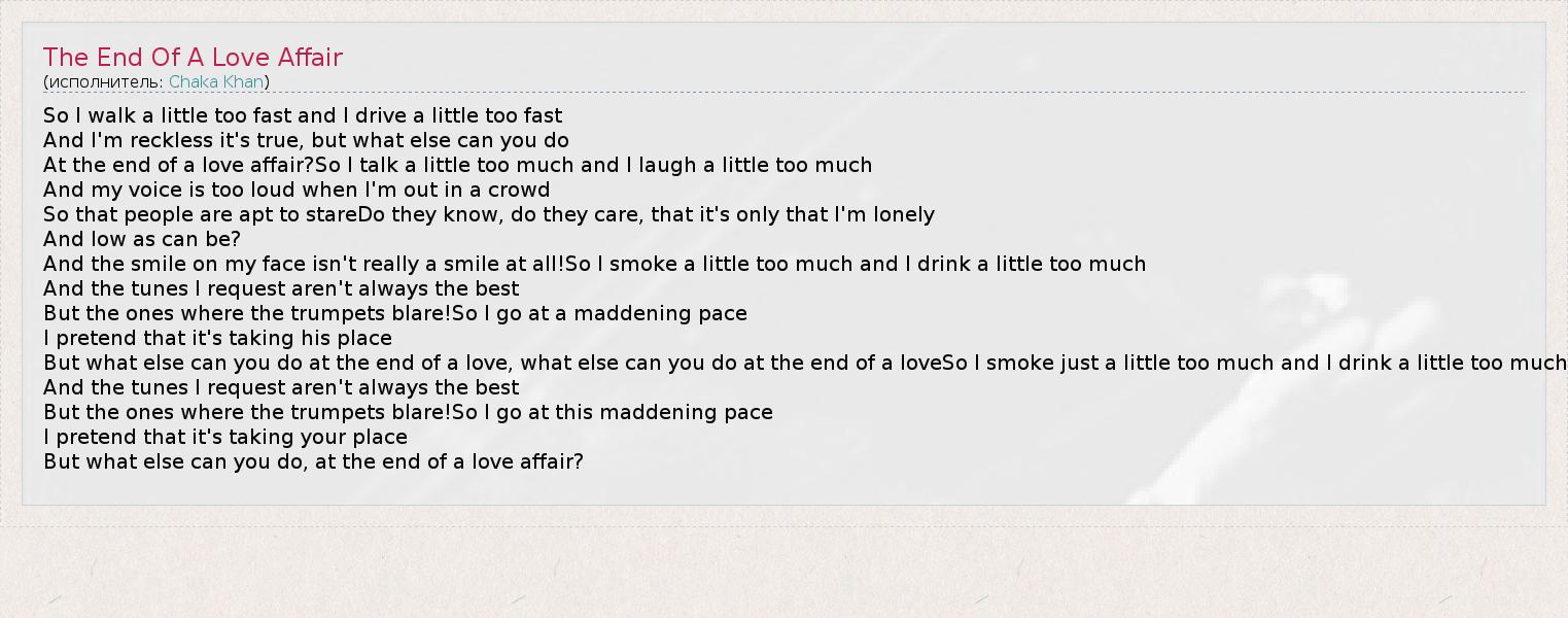 ГлавнаяИсполнителиChaka KhanThe End Of A Love Affair