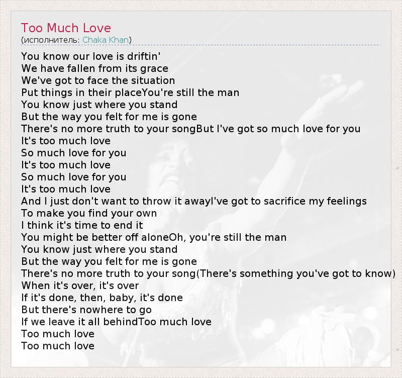 А как ты думаешь, о чем песня "Too Much Love" ?