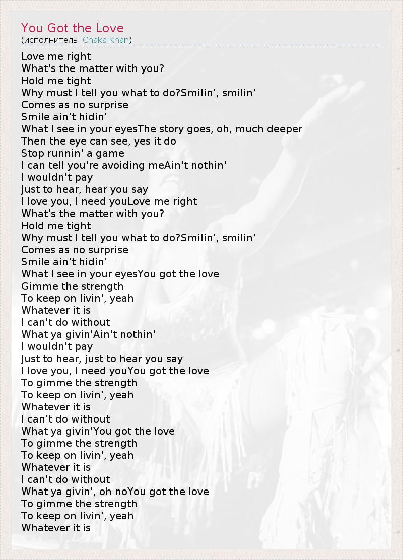 А как ты думаешь, о чем песня "You Got the Love" ?