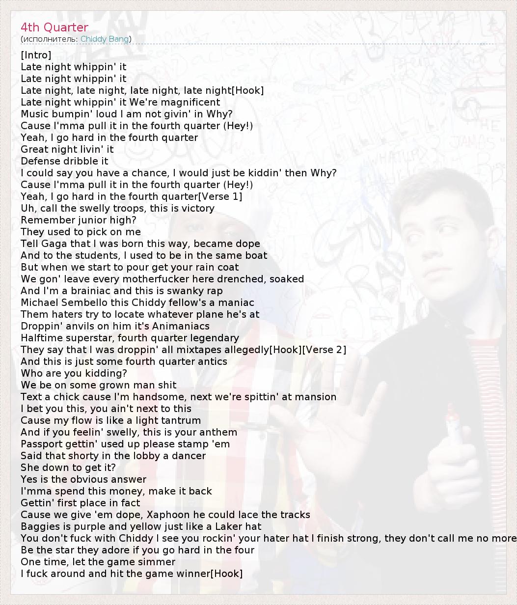 А как ты думаешь, о чем песня "4th Quarter" ?