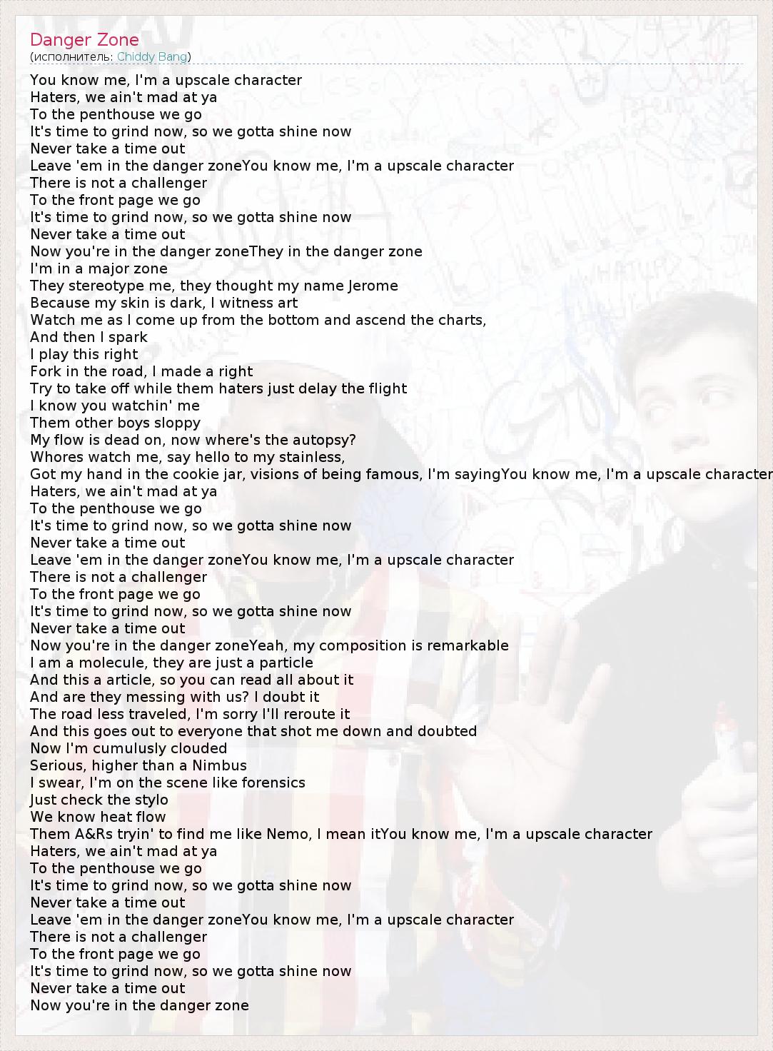 А как ты думаешь, о чем песня "Danger Zone" ?