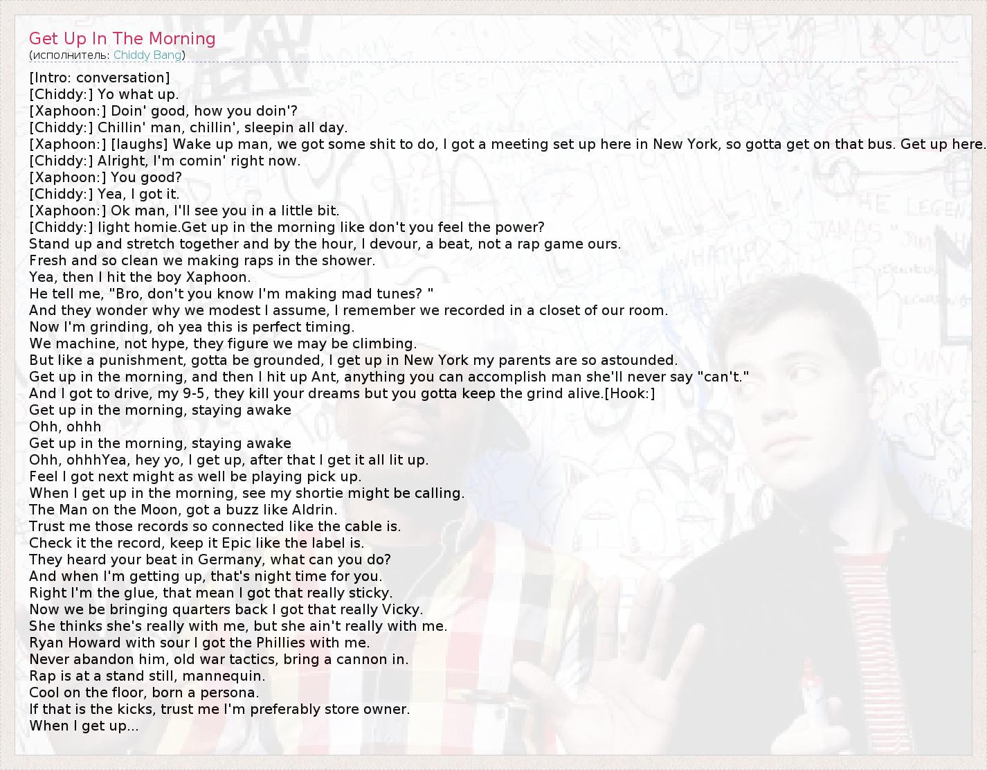 А как ты думаешь, о чем песня "Get Up In The Morning" ?