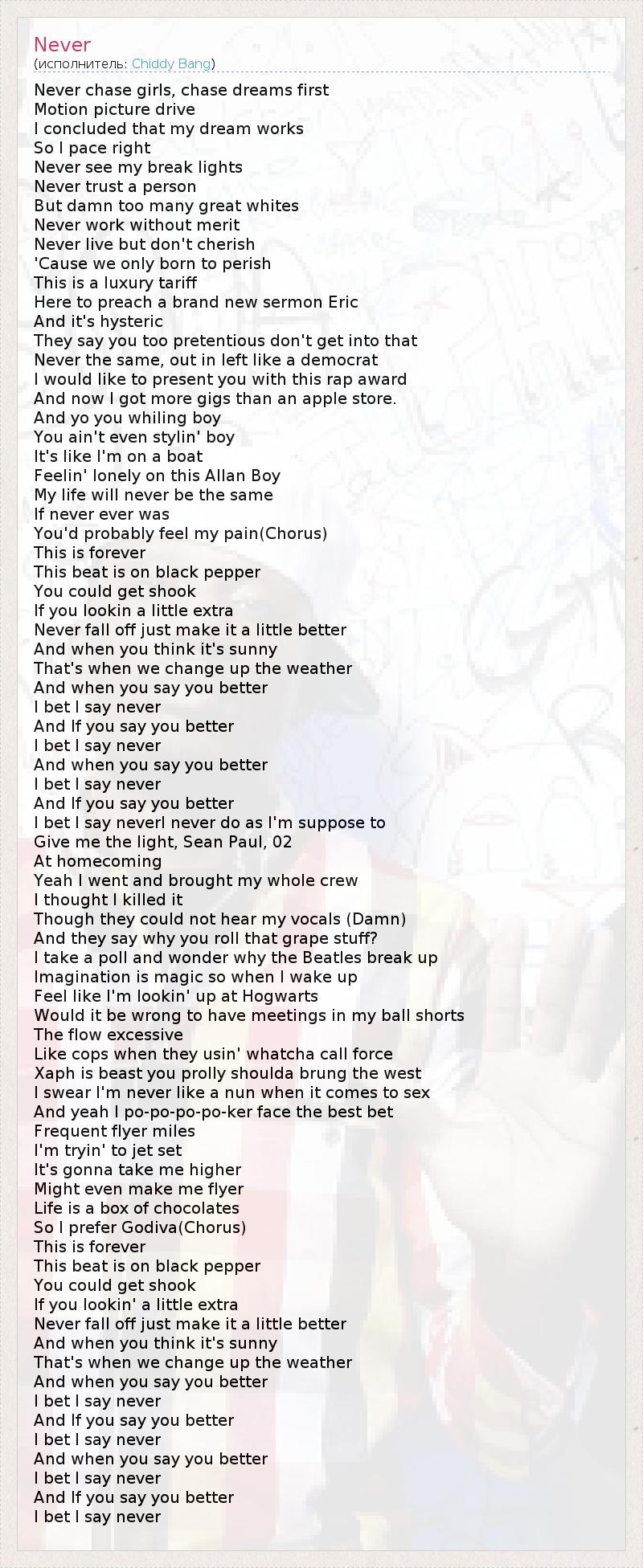 I bet I say neverI never do as I'm suppose to