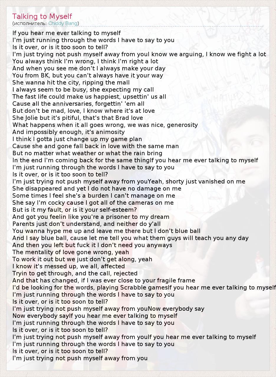 А как ты думаешь, о чем песня "Talking to Myself" ?