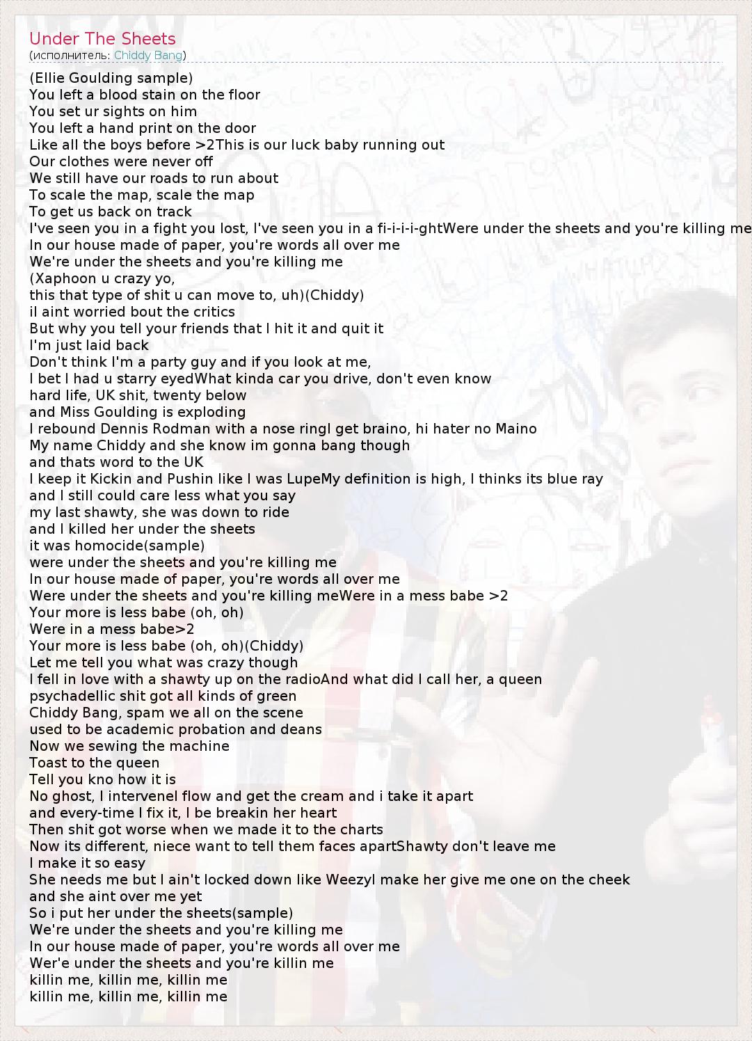 А как ты думаешь, о чем песня "Under The Sheets" ?