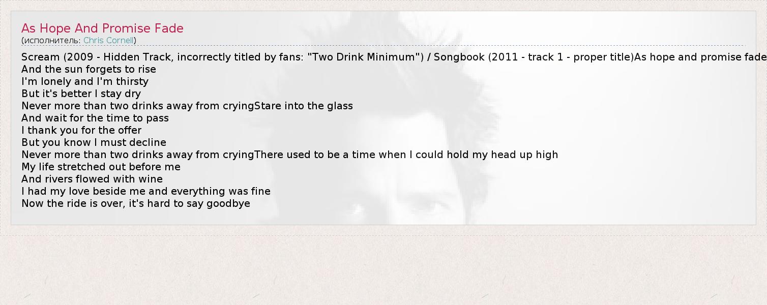 ГлавнаяИсполнителиChris CornellAs Hope And Promise Fade