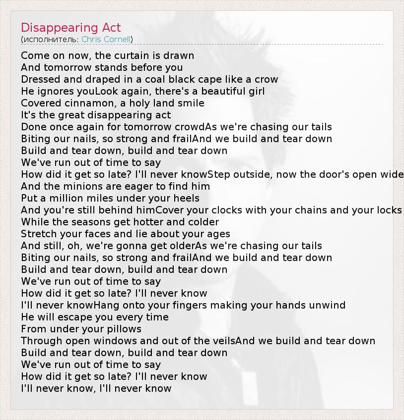 А как ты думаешь, о чем песня "Disappearing Act" ?