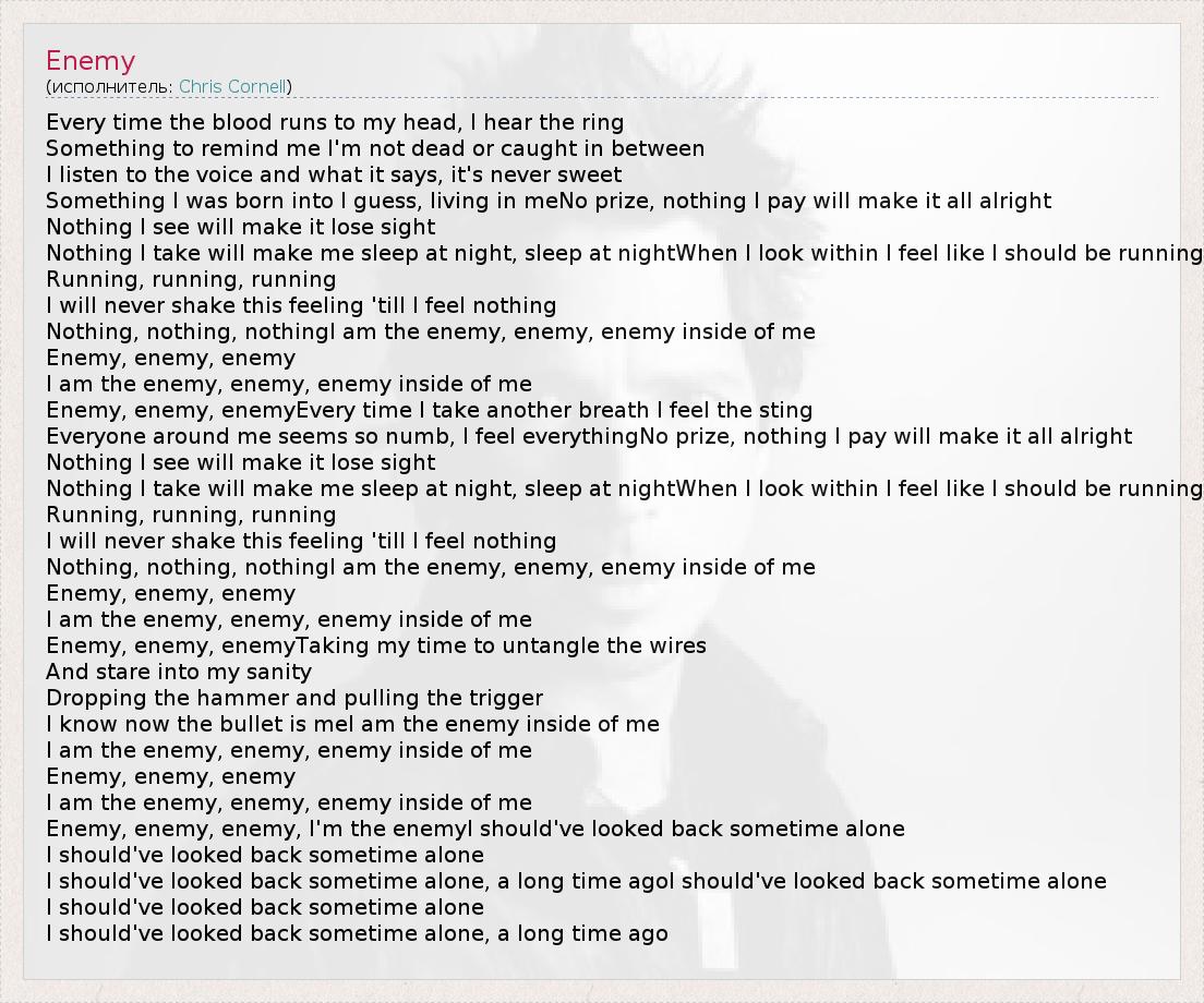 Enemy, enemy, enemy, I'm the enemyI should've looked back sometime alone