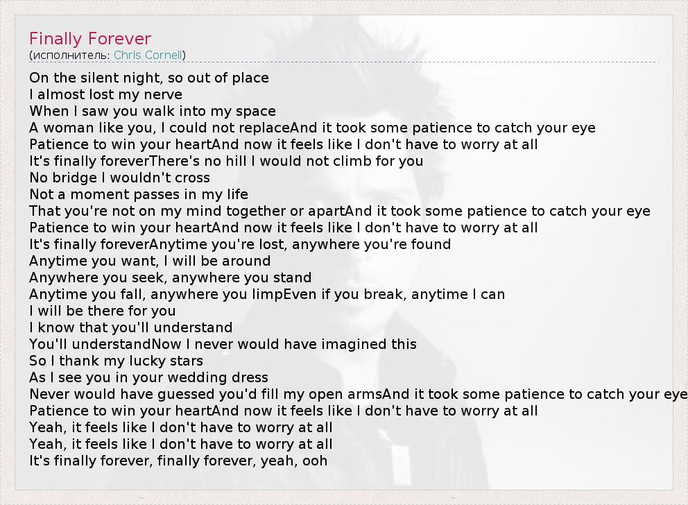 А как ты думаешь, о чем песня "Finally Forever" ?