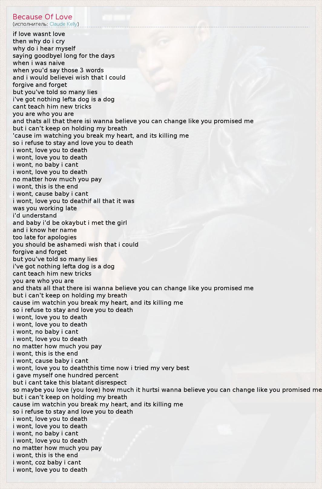 А как ты думаешь, о чем песня "Because Of Love" ?