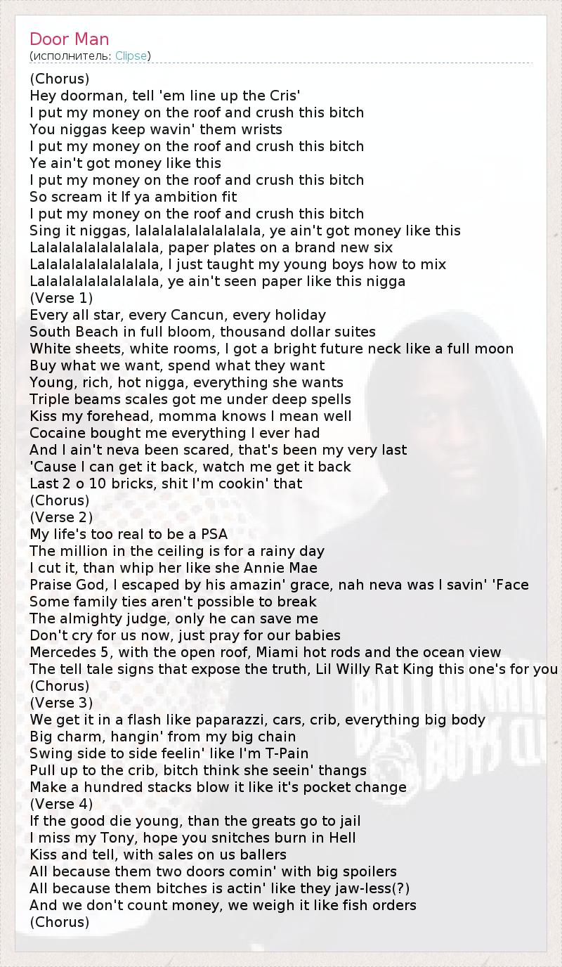 Это интересно:Clipse – выходцы из Бронкса. В их музыке нет ничего от Нью-Йорка и тем невероятнее звучит их происхождение. Братья Джин и Терренс Торнтоны (Malice и Pusha-T) перебрались в Вирджиния Бич, город на Атлантическом побережье, где взяли начало карьеры таких людей как Timbaland и The Neptunes.По словам Malice, сначала они собирались назваться Full Eclipse, "полное... продолжение