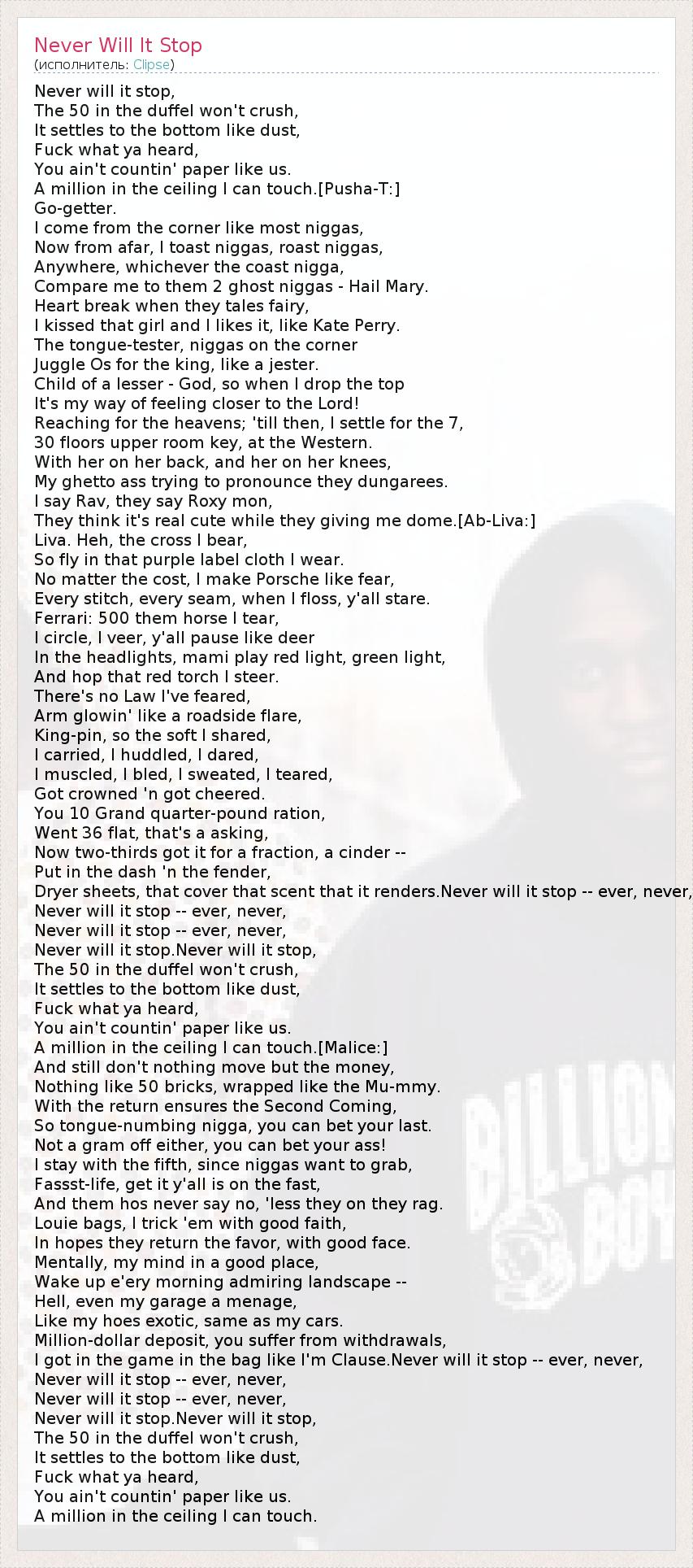 А как ты думаешь, о чем песня "Never Will It Stop" ?