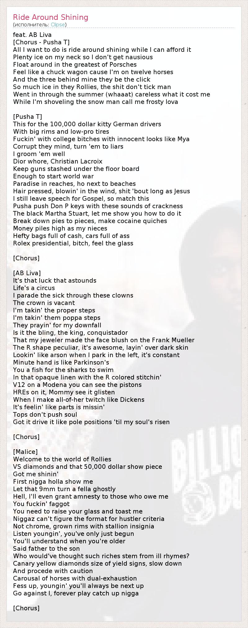 ГлавнаяИсполнителиClipseRide Around Shining