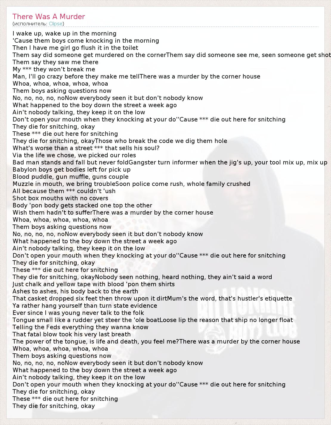А как ты думаешь, о чем песня "There Was A Murder" ?