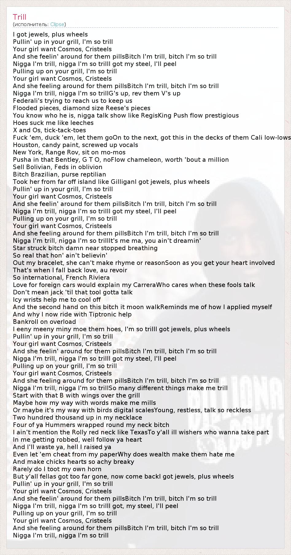 Nigga I'm trill, nigga I'm so trillSo many different things make me trill