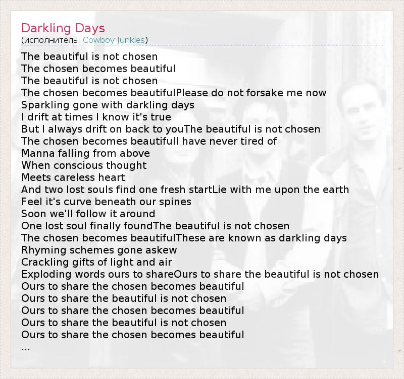 The chosen becomes beautifulThese are known as darkling days