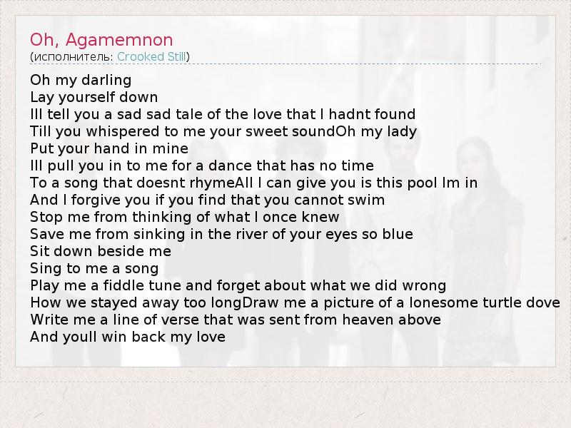 А как ты думаешь, о чем песня "Oh, Agamemnon" ?