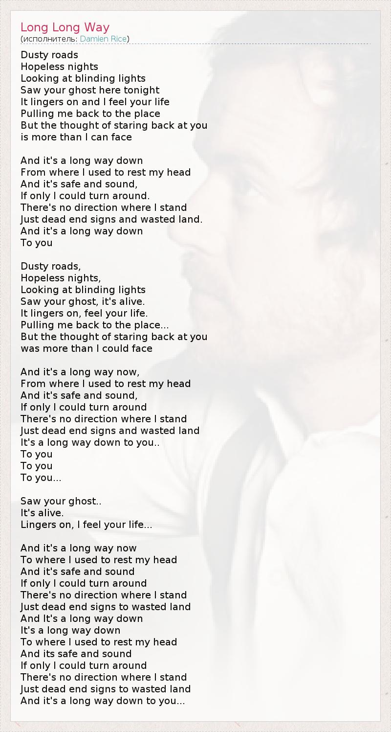 А как ты думаешь, о чем песня "Long Long Way" ?